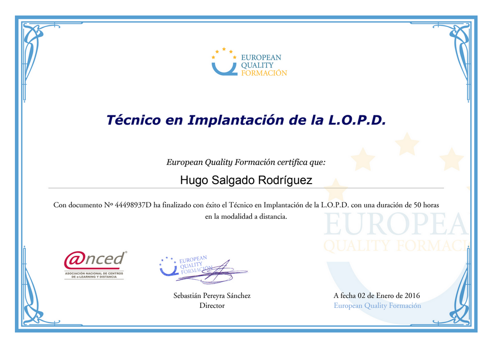 CertificadoTécnico en implantación de L.O.P.D
